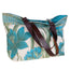 Immerse yourself in a floral atmosphere with this reversible bag that completes the "Heron" collection. Its two patterns, different on the inside and outside of the bag, feature a palette of bright colors. The canvas echoes the sunny tones of summer by displaying a floral pattern and a geometric frieze in almond and turquoise blue. The interior is more urban: green and turquoise stripes.